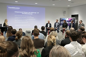 Anschließend wurden im Rahmen eines Best Practices-Segments erfolgreiche Kollaborationen zwischen Start-Ups und etablierten Unternehmen vorgestellt, die verdeutlichten, welches Potenzial in der Zusammenarbeit für beide Seiten steckt. Ab 18:15 Uhr konnten sich die Gäste in einer Start-Up-Ausstellung und beim anschließenden Networking austauschen. Zu den ausstellenden Start-Ups gehörten unter anderem Youtilly und BAScloud, die ihre innovativen Konzepte vorstellten.