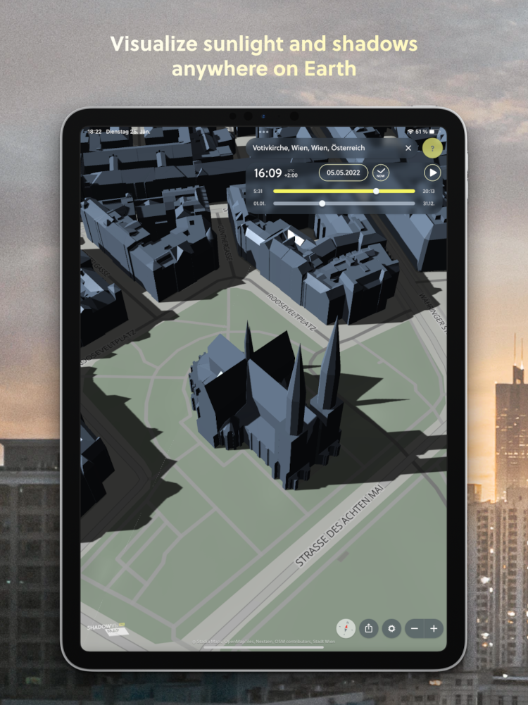 Shadowmap ist ein globales, schnelles und zuverlässiges, integriertes Tool zur Visualisierung von Sonnenlicht und Schatten.